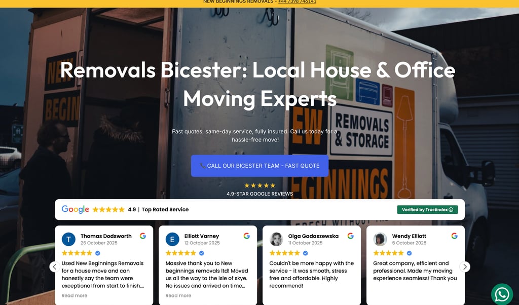 New Beginnings Removals, we rebuild the full website and recreate the online presence. On-Demand Google Ads and SEO.